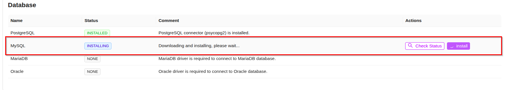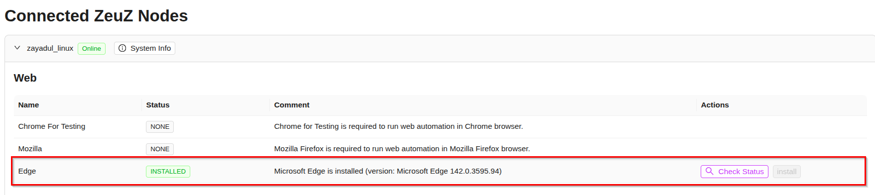 - Check whether a tool is already installed on the device where your ZeuZ node is running by clicking the "Check Status" button.