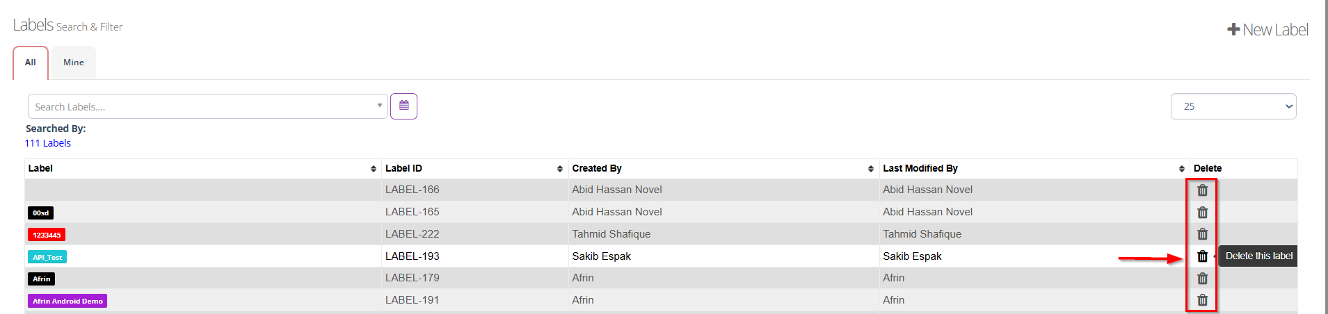 - To delete a label, click the Delete button located on the right side of that specific label.