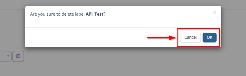 - A confirmation pop-up appears when a user tries to delete a label. It prompts the user to confirm the deletion. Two options are available: