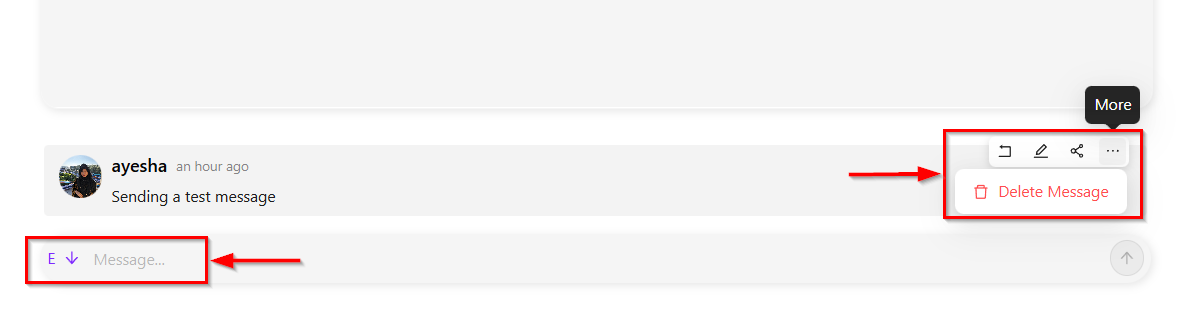 Here, the sent message can be edited, replied to, shared, or deleted.