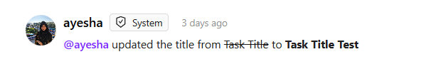 - If any changes are made to a requirement, the system displays a system message indicating which user made the change and what was updated. This system message supports changes to the title, assignee, milestone, version, feature, status, priority, start and end dates, testing, and labels. However, system messages are not generated for changes to followers, links, descriptions, or attachments.