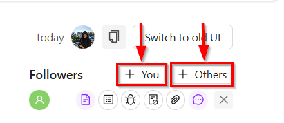 Followers can be removed from the list. If a user removes themselves from the followers section, the +You option is automatically displayed. By clicking +You option, the user is added again as a follower. By clicking +Others, additional users can be added as followers.