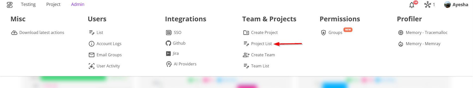 - First, navigate to the Projects page by clicking the "Project List" option from the menu bar.
