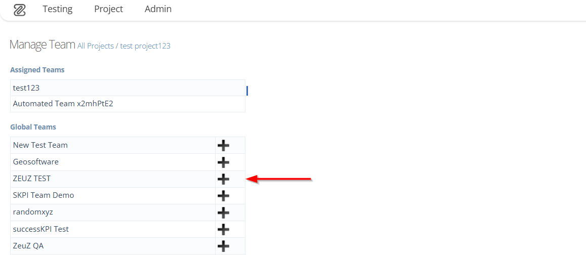 Linking a Team to a Project means assigning a specific team to work on a particular project so that the team members can access and manage the test cases and executions, scheduler, project management, test history and related tasks within that project in ZeuZ.