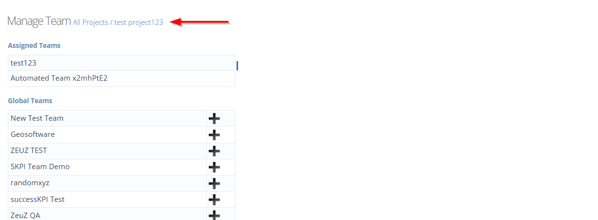 - The added team will be shown under the Assigned Teams section.