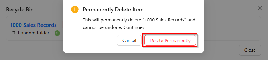 • Safe deletes: Recycle Bin prevents accidental loss with restore capability.