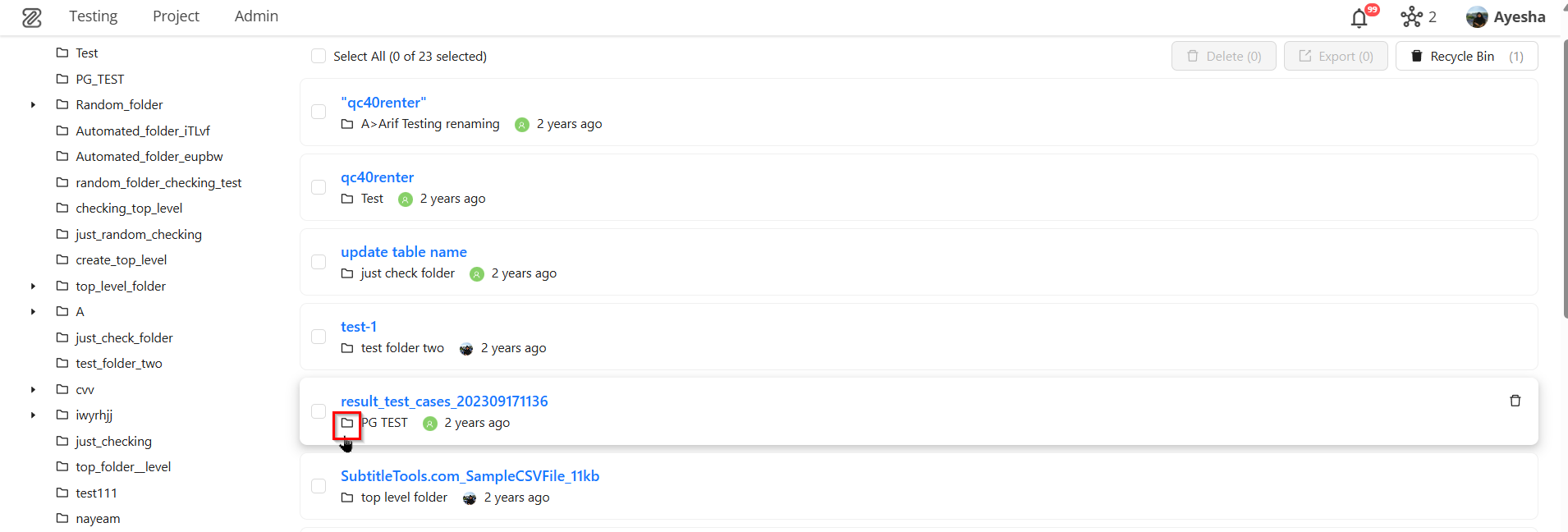 1. Use the Action Bar to delete, export, or view the Recycle Bin.