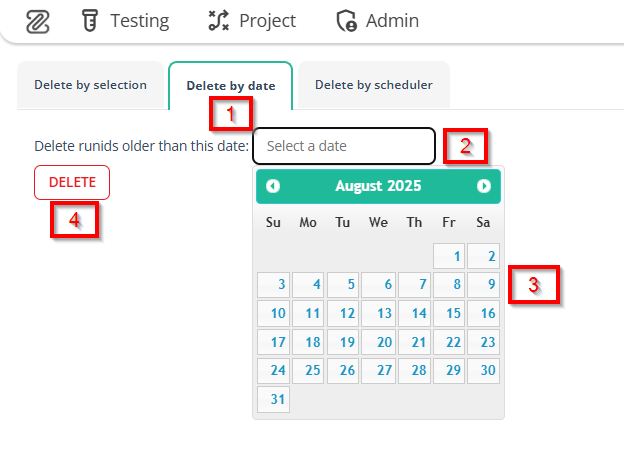 - It allows users to delete test run records (Run IDs) that are older than a selected date.