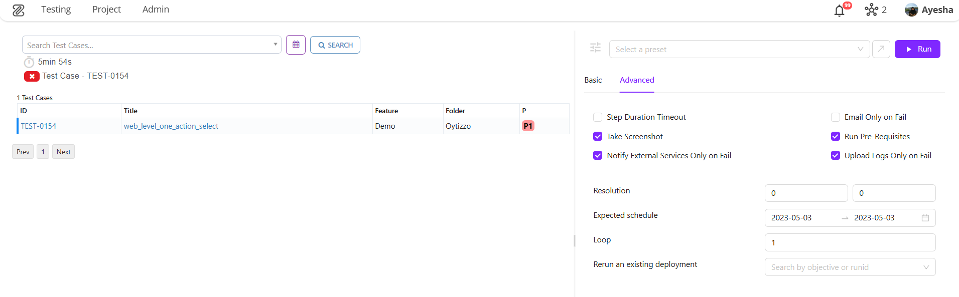 Example: Here, the execution is scheduled to run on 2023-05-03 where the start date and end date are the same. - Loop: It refers to running the same test case or a set of test steps repeatedly for a defined number of times or until a specific condition is met.