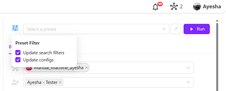 - Preset and Configuration Management - Choosing a preset to ensure consistent test environments and parameters.