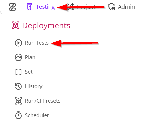 - From the menu bar, navigate to Testing and select the Run Tests option.