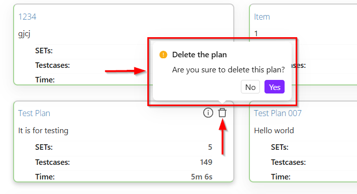 - The trash (delete) icon is located at the top-right corner and can be used to delete a specific plan if needed.