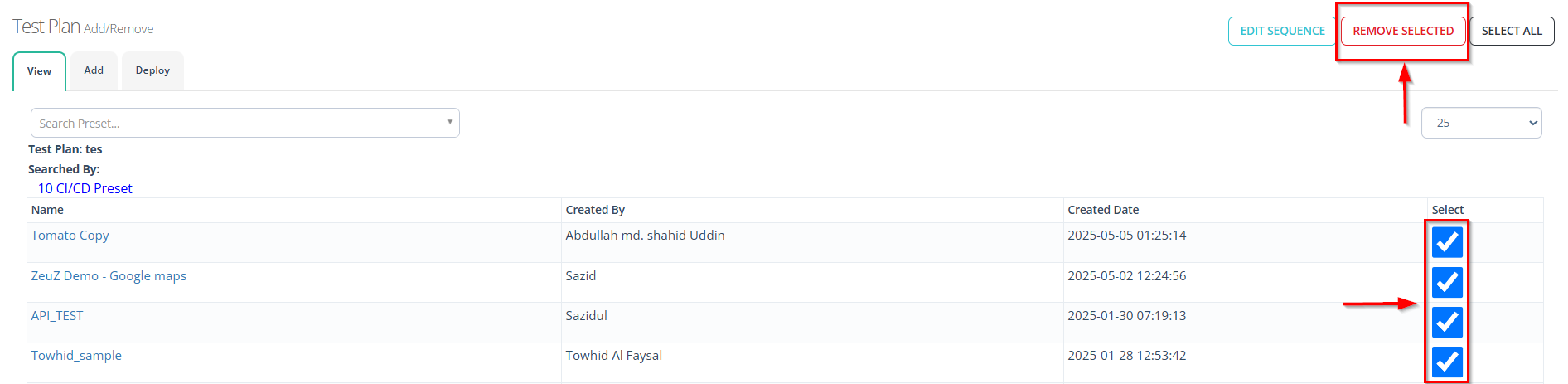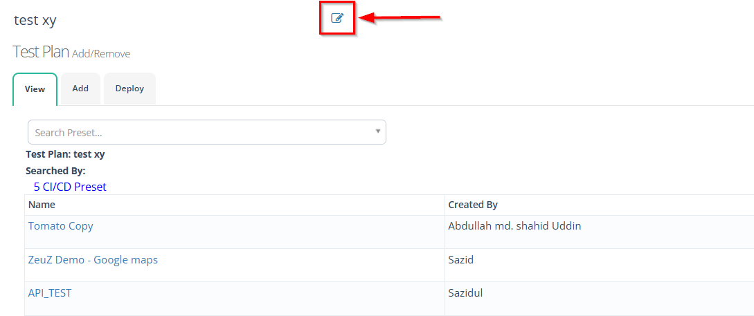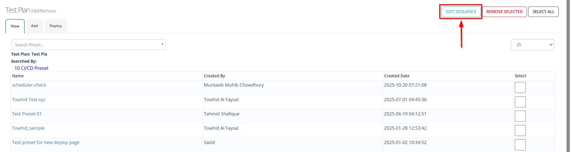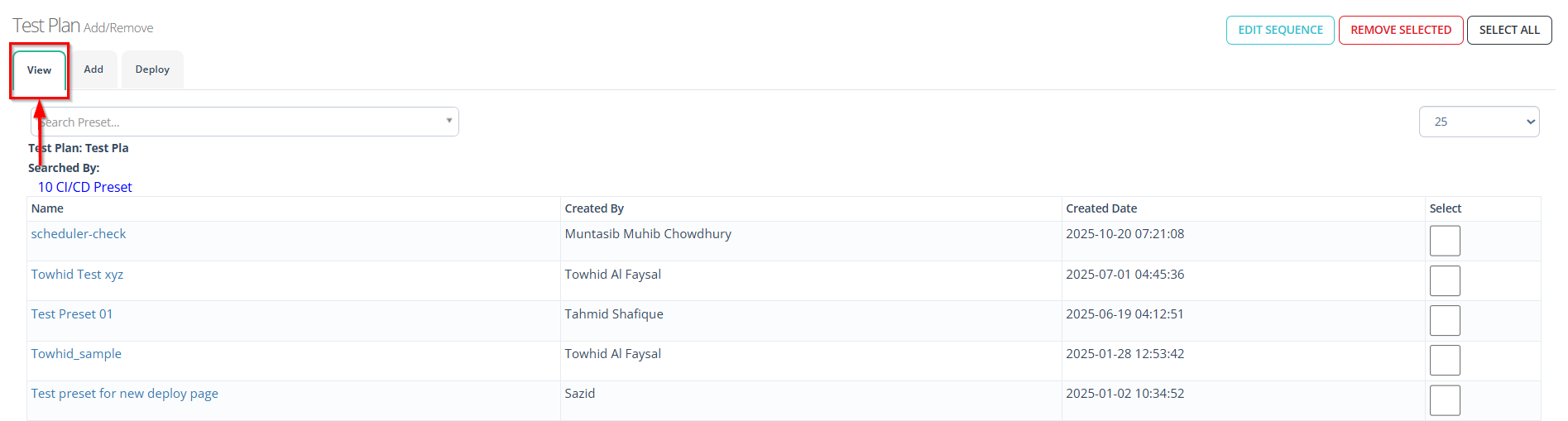 - To verify whether the required presets have been added, click the "View" tab on the Test Plan page.