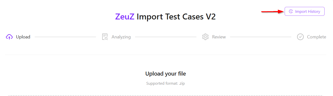 ZeuZ provides a Import History option to monitor previous imports and their status.
