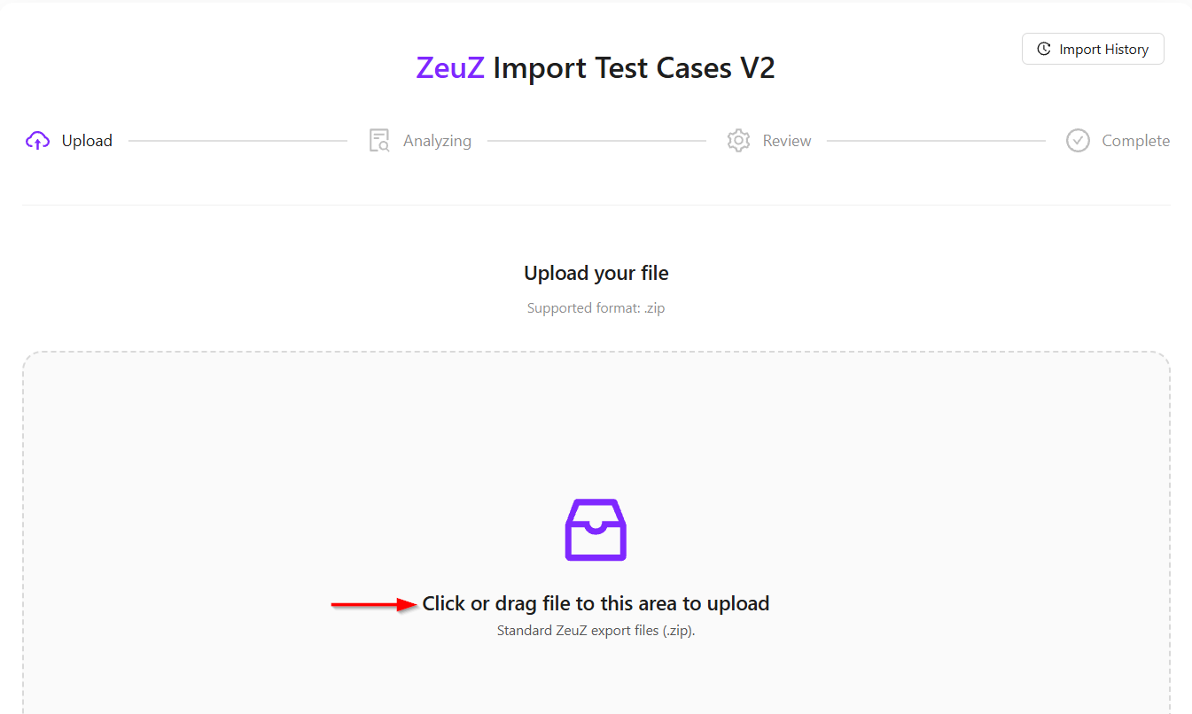 - Select the supported .zip file containing the test cases.