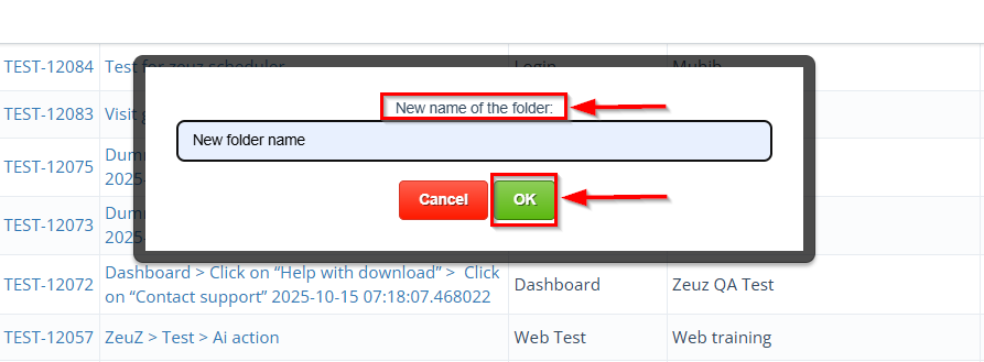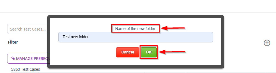 - Click to enter the Name of the new folder (e.g., Test new folder).