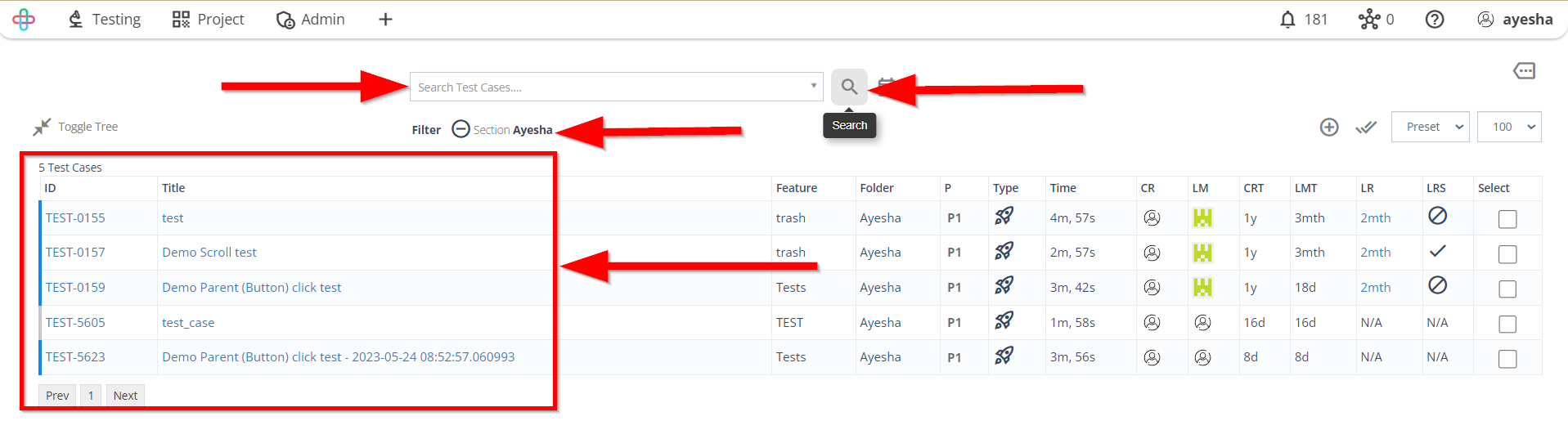 To check whether the Test Cases have been moved or not, click on the Search Test Cases.