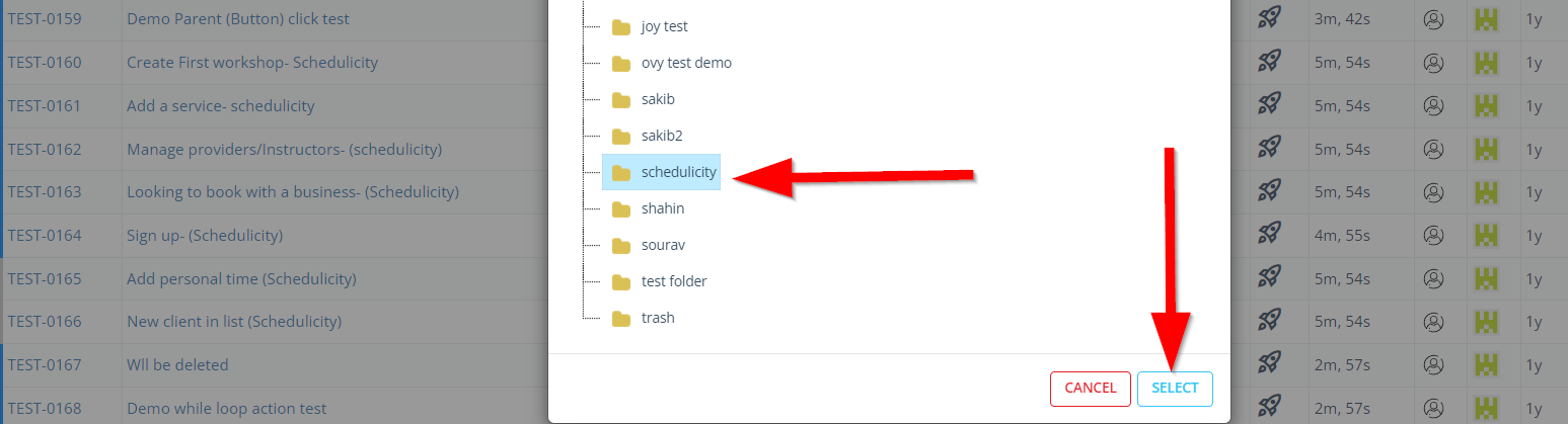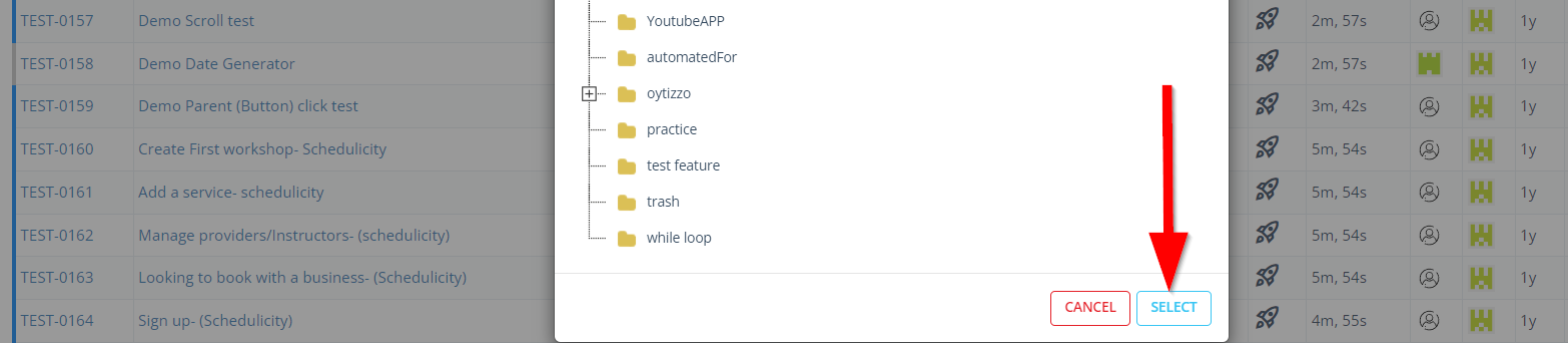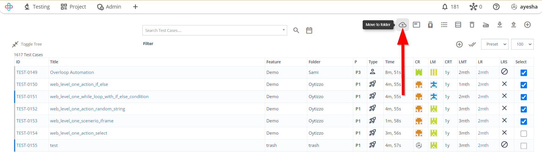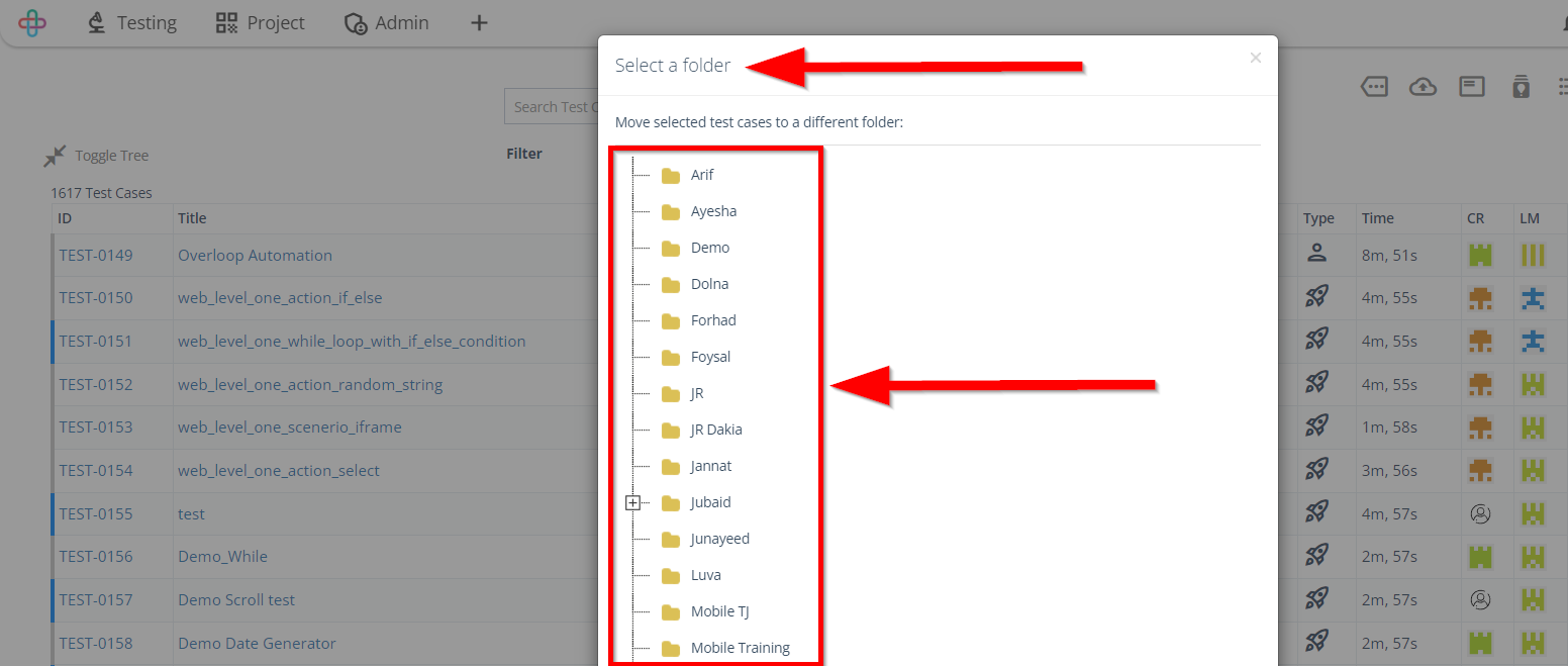 - In the same way required Folder can be checked where selected Test Cases will be moved.